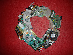 I found a different Christmas wreath today, you know I looked for some before I started my own version but couldn’t find much of anything that was a wreath and made with computer parts. Google has failed me…